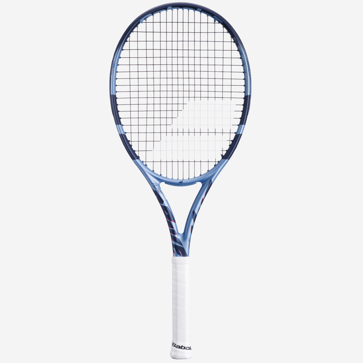 The Pure Drive tennis racquet boasts an all-new design to reflect this stunning power: it is done in dazzling metallic blue highlighted by flamboyant red trim in the middle to symbolize the power that erupts between your hands.